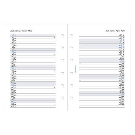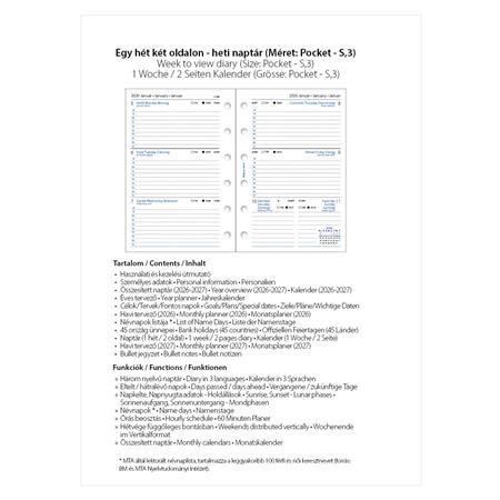 Kalendárium betét, tervező, Filofaxhoz, pocket méret, heti, 1 hét/2 oldal, 2026