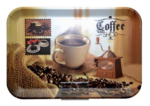 Tálca, szögletes, műanyag, kávéház mintás, 21x14 cm